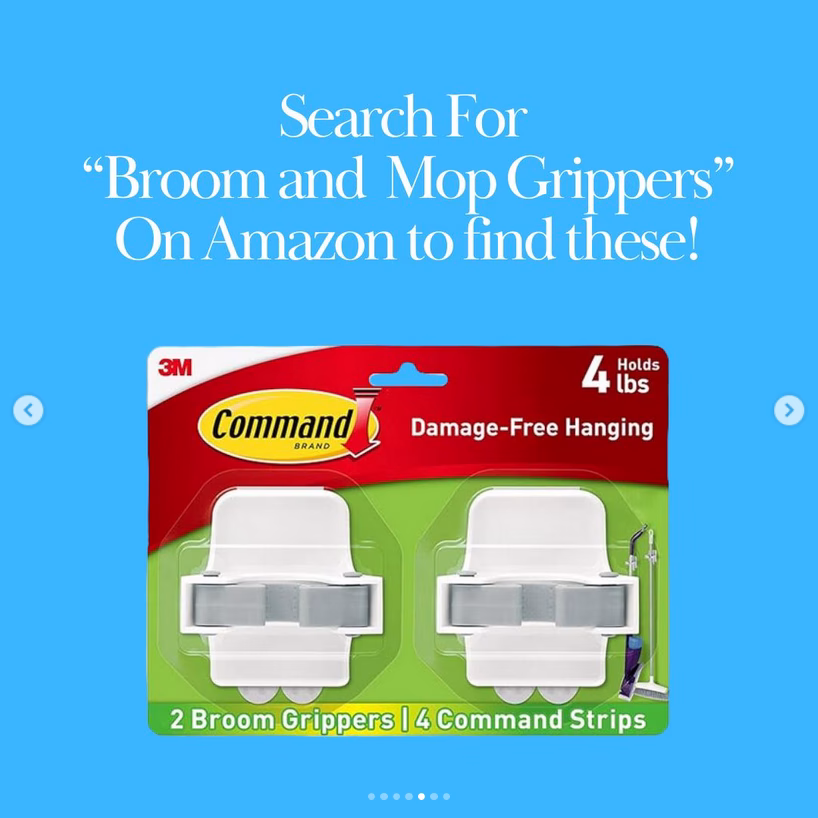 These Command strips keep everything off the floor and out of the way. Stick them inside your closet, clip your broom or mop in, and you’re done. It keeps everything organized without taking up any actual space.
