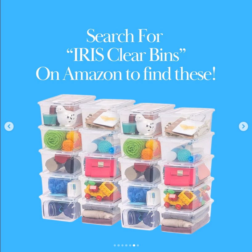 They come in a ton of sizes, they stack well, and they’ve held up better than most “dorm organization” products I’ve bought in the past. Just search IRIS Clear Bins on Amazon and pick whatever fits your space.